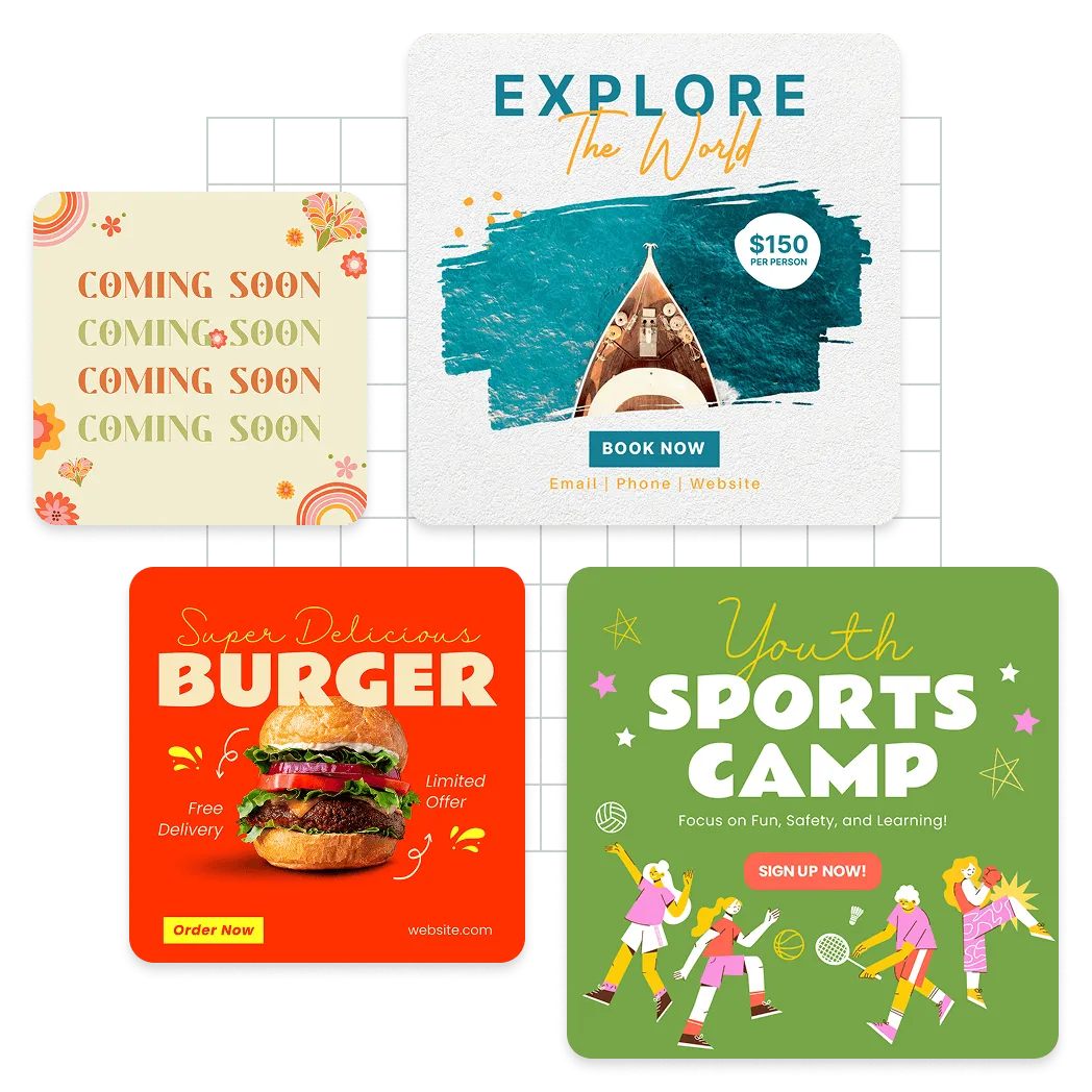 Browse and choose from thousands of Instagram posts, customised with your logo colors to match your brand.