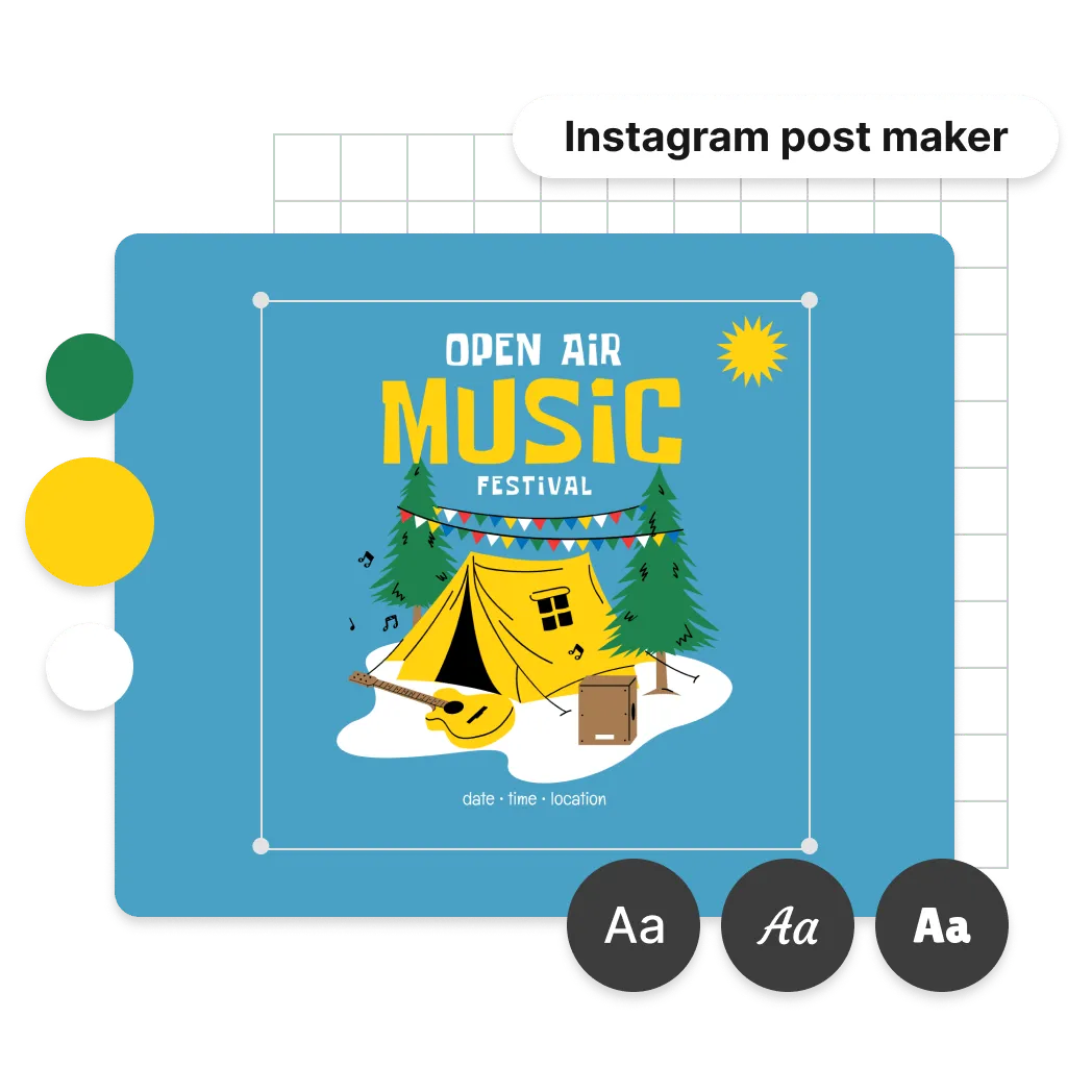 Fully customize the fonts, colors and layout of your Instagram post. Design.com provides the right tools to create the perfect Instagram post for your business. In just a few clicks you can also make your Instagram post pop with gradient colors, a huge array of custom shapes or curved text – it’s easy to create a beautiful Instagram post.